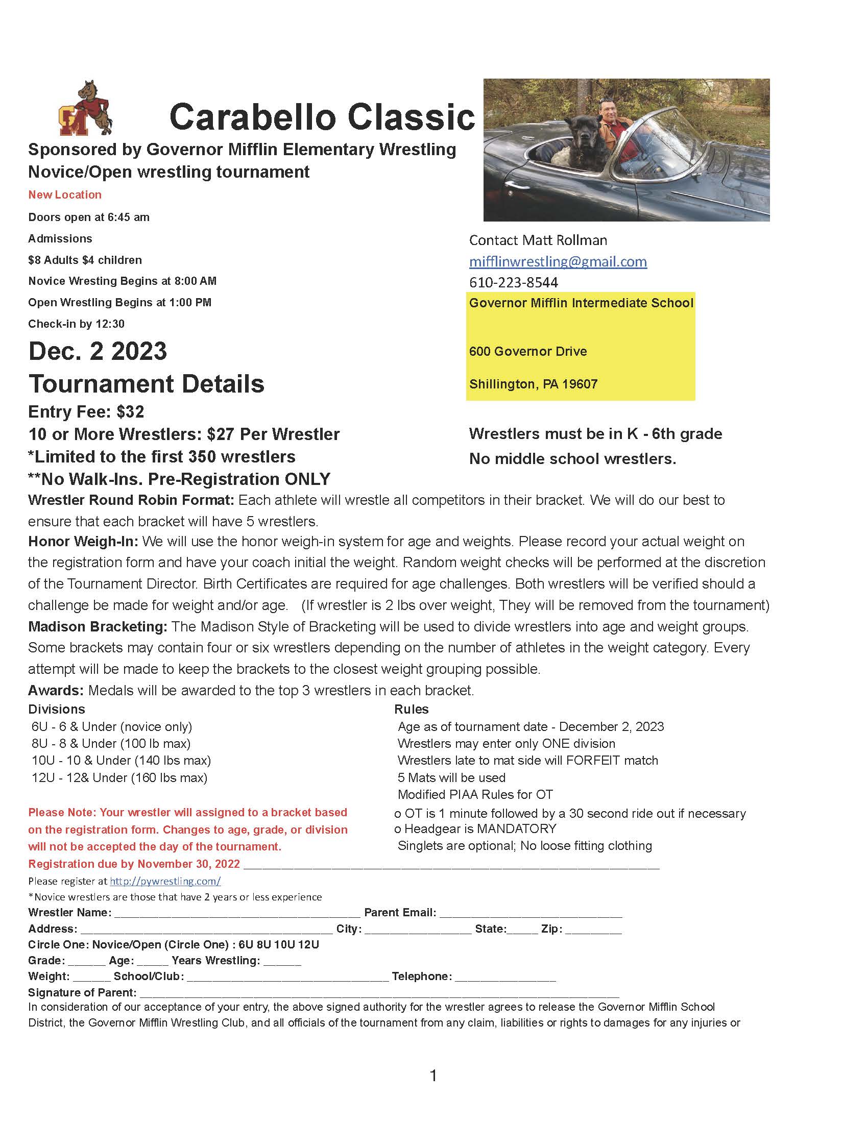 Manchester Holiday Wrestling Touornament Coppermine Pantherplex 1400 Panther Drive Hampstead, MD 21074 |