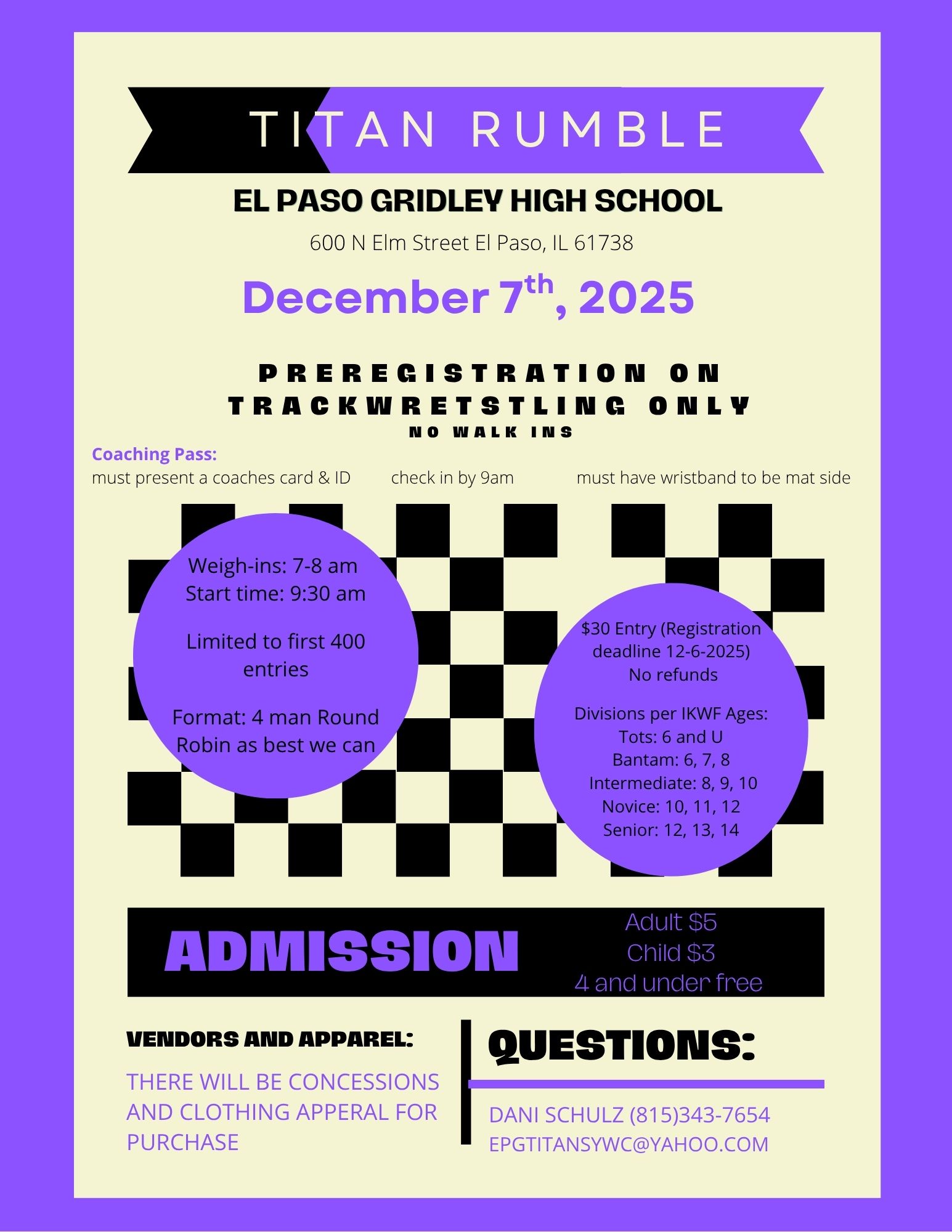 Titan Rumble (USAW) El Paso Gridley High School 600 N Elm Street El Paso, IL 61738 |