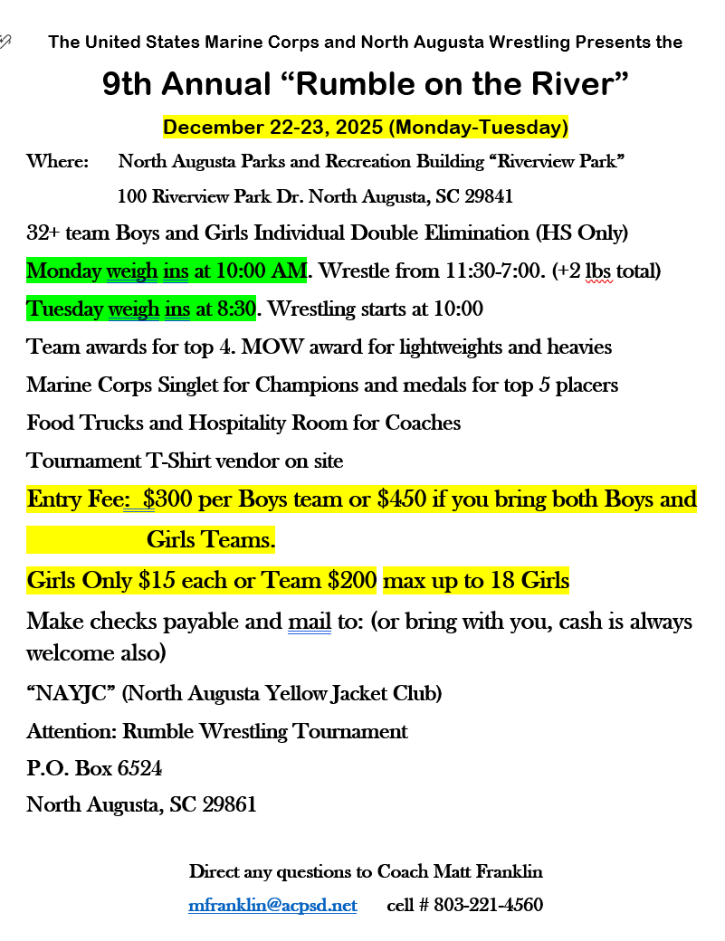 2025 CSRA Rumble on the River - North Augusta North Augusta Parks Recreation and Tourism 100 Riverview Park Drive North Augusta, SC 29841 |