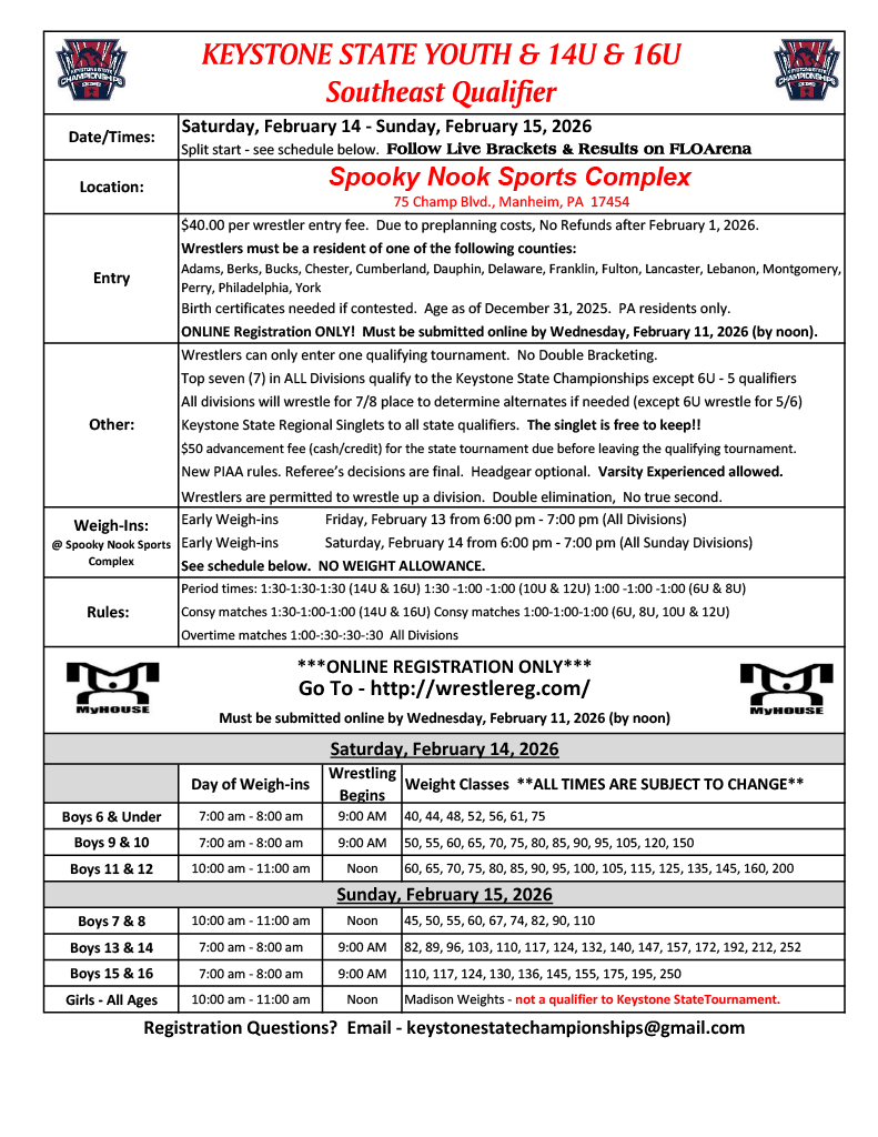 2026 Keystone State Southeast Qualifier Spooky Nook Sports 2913 Spooky Nook Road Manheim, PA 17545 |