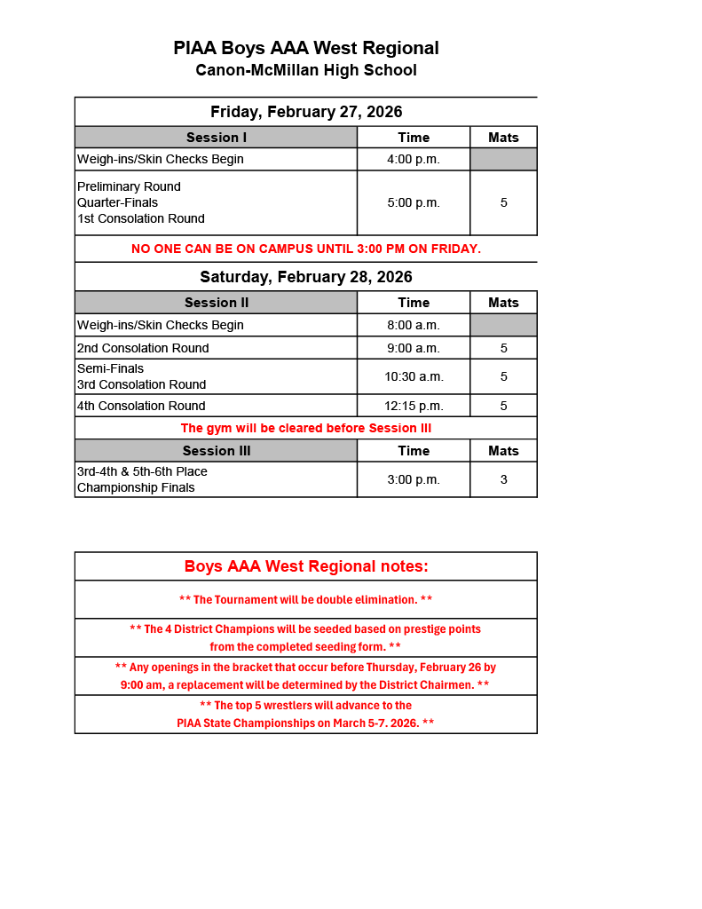 2026 PJW Area VI JH Qualifier Hickory High School 640 North Hermitage Road Hermitage, PA 16148 |