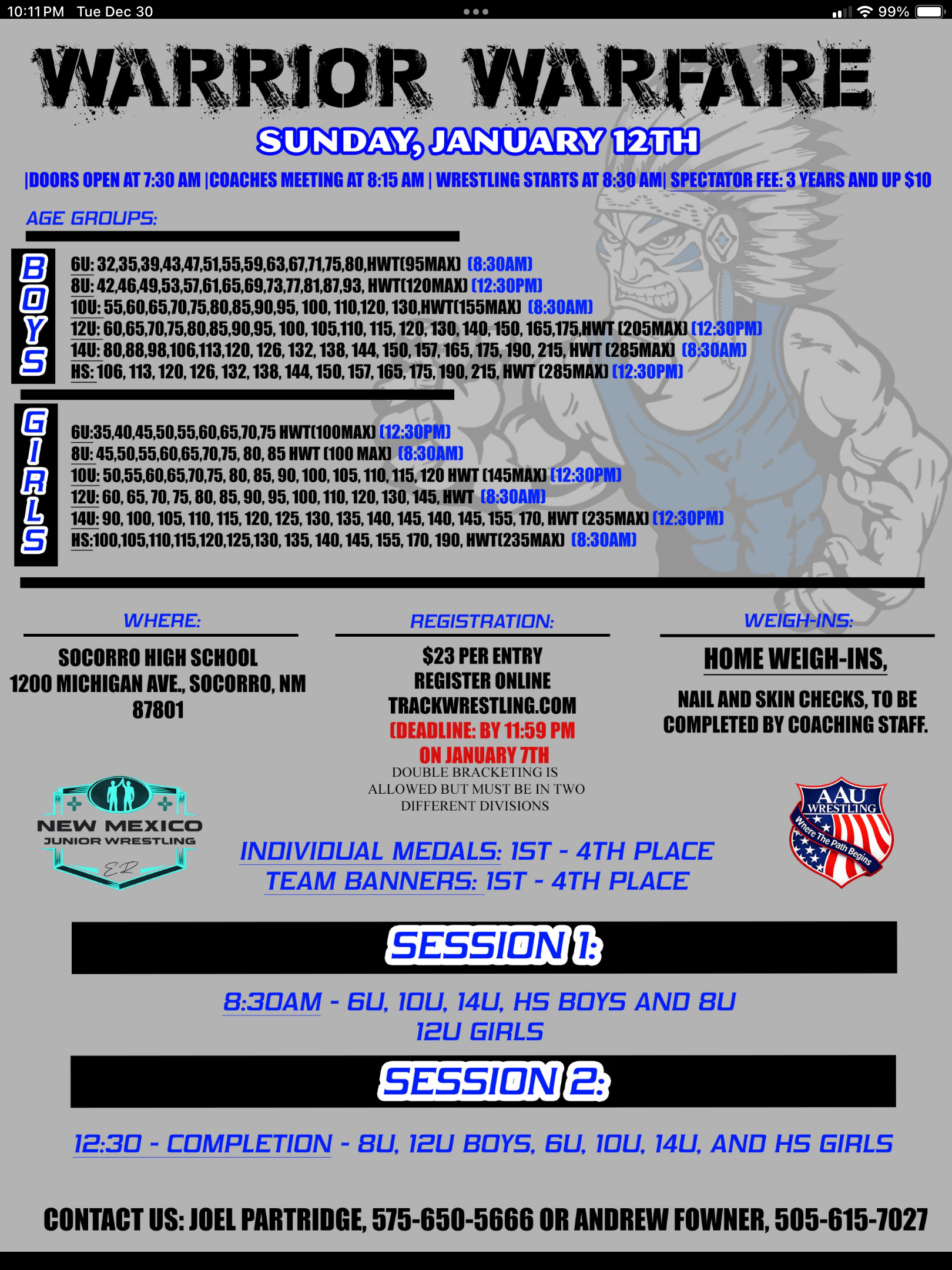 35th Annual Tracy Borah Duals Mountaineer Field House 500 East Ruby Avenue Gunnison, CO 81230 |